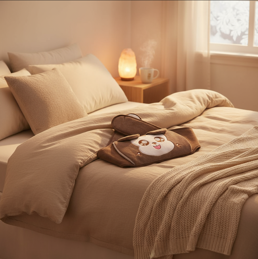 Vul de warmwaterzak, stop hem in je Aap Muffie en voel hoe stress en kou verdwijnen terwijl hij je omarmt.